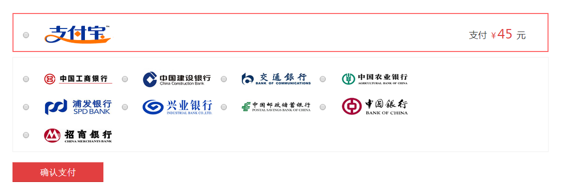 商城提供支付宝支付网银支付两种方式。如图选择您要的支付方式点击[确认支付]即可
